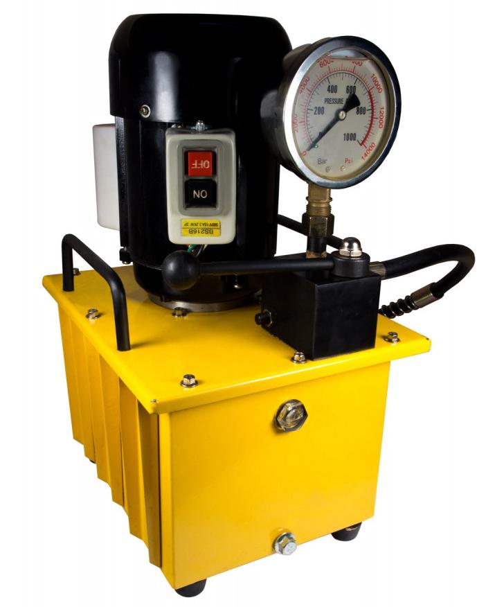 Маслостанция с электроприводом с возможностью подключения одного гидравлического инструмента одностороннего действия (домкрата), с механическим управлением (2-х позиционный, 2-х линейный клапан).