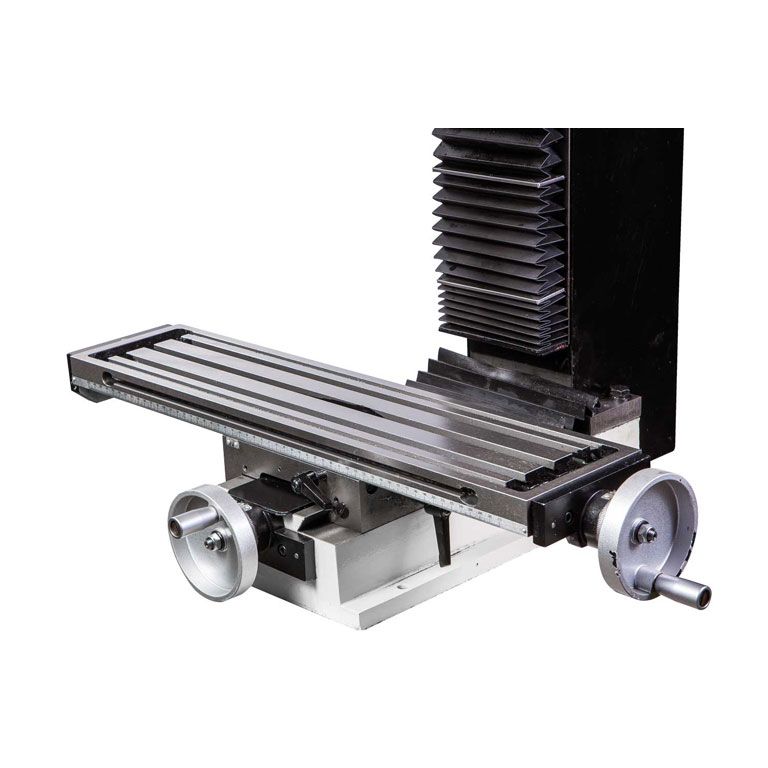 Станок полностью выполнен из чугуна, что способствует хорошему поглощению вибрации при разных режимах резания. Станок выполнен в классическом исполнении, имеет крестообразный стол по типу "ласточкин хвост", по мере износа предусмотрена возможность подтягивания клина. Особенность данного станка – возможность нарезания резьбы. На рукоятке вылета пиноли располагается кнопка, включающая реверс станка. Это гарантирует высокое качество нарезаемой резьбы и отсутствие возможности сломать метчик. А возможность микроподачи вылета пиноли обеспечивает точное фрезерование на заданную глубину.