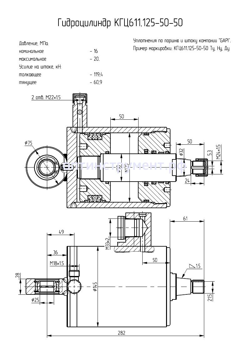 Гидроцилиндр КГЦ 611.125-50-50 в продаже по цене 11 490 руб. в Интернет-магазине Проф-инструмент с доставкой в Хантах-Мансийске и Хантах-Мансийском Автономном Округе - Югре. Звоните по телефону +8 (800) 302-10-51.