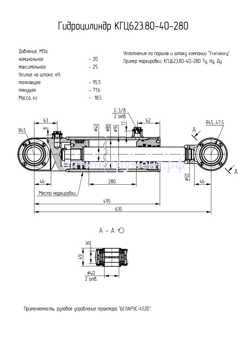 Гидроцилиндр КГЦ 623.80-40-280 в продаже по цене 14 565 руб. в Интернет-магазине Проф-инструмент с доставкой в Хантах-Мансийске и Хантах-Мансийском Автономном Округе - Югре. Звоните по телефону +8 (800) 302-10-51.