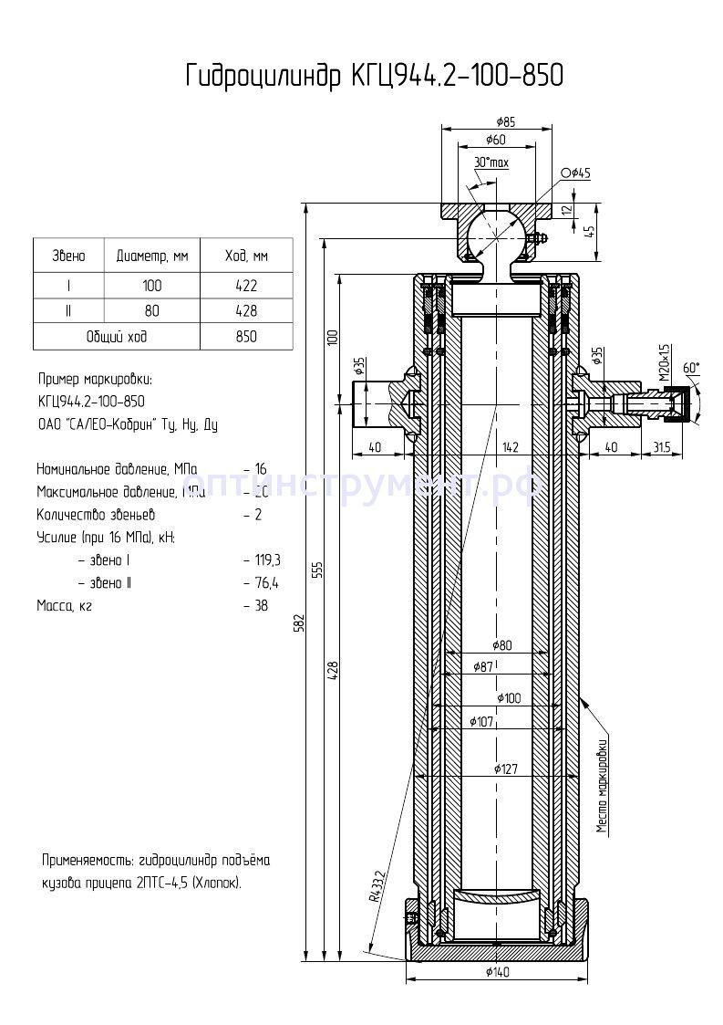 Гидроцилиндр КГЦ 944.2-100-850 в продаже по цене 21 105 руб. в Интернет-магазине Проф-инструмент с доставкой в Хантах-Мансийске и Хантах-Мансийском Автономном Округе - Югре. Звоните по телефону +8 (800) 302-10-51.