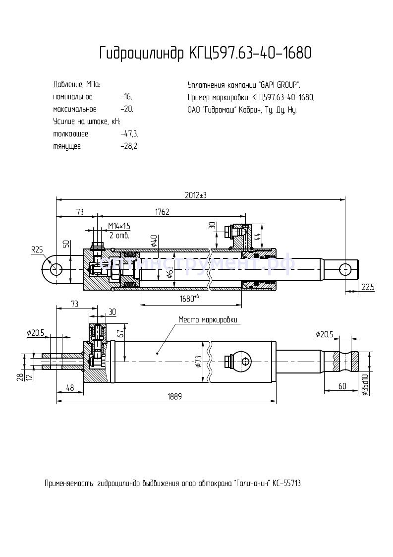 Гидроцилиндр выдвижения опор автокрана "Галичанин КС-55713" КГЦ 597.63-40-1680 в продаже по цене 18 810 руб. в Интернет-магазине Проф-инструмент с доставкой в Хантах-Мансийске и Хантах-Мансийском Автономном Округе - Югре. Звоните по телефону +8 (800) 302-10-51.