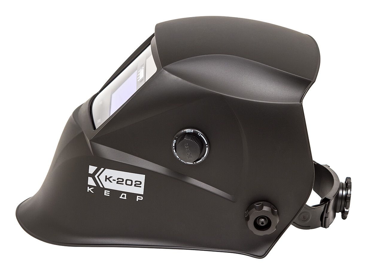 Маска сварщика КЕДР К-202, черная, новая высокотехнологичная продукция, которая использует технологию спектральной фильтрации. Маска с системой изменения степени затемнения от 9DIN до 13DIN и реальным временем включения 0,00003 сек.