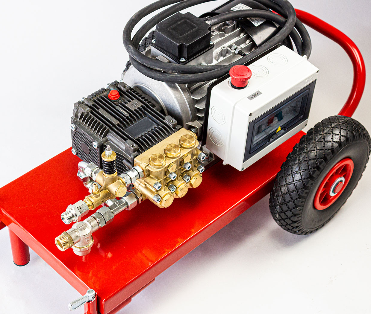 - Трехплунжерный насос высокого давления Annovi Reverberi (Италия). Головка из никелированной латуни с высокой стойкостью к механическим нагрузкам гарантирует длительный срок эксплуатации. Термоклапан для защиты от перегрева;