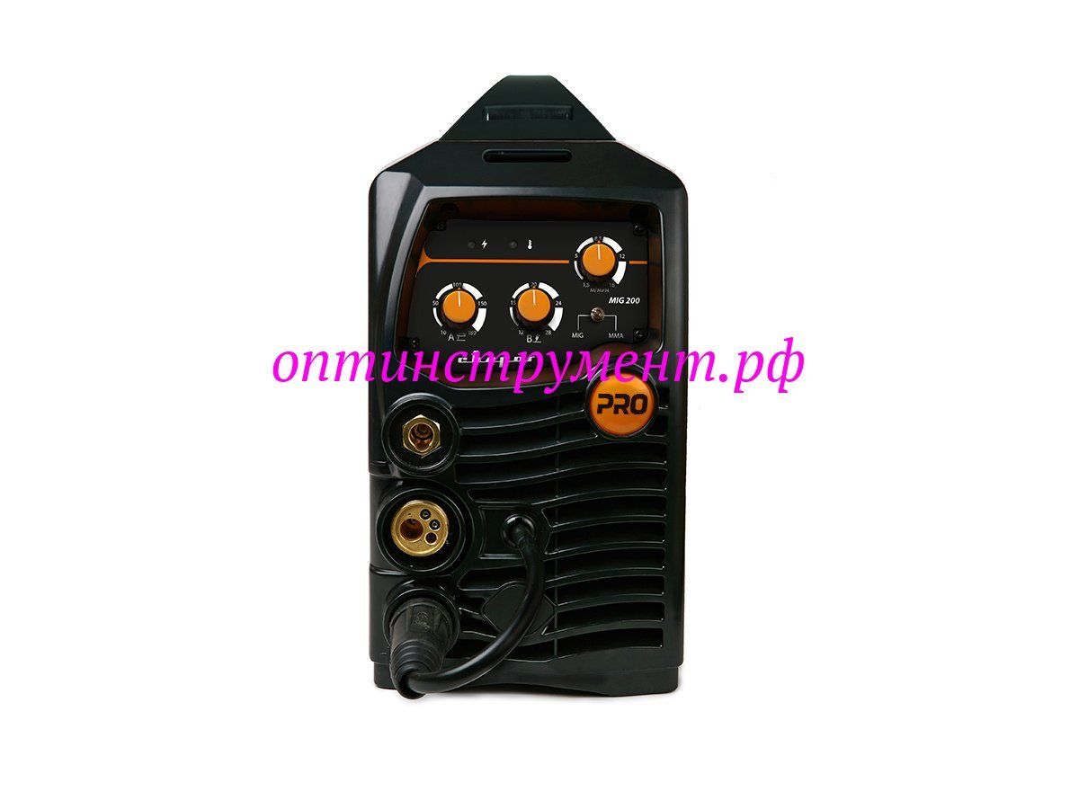 PRO MIG 200 (N220) — инверторный сварочный аппарат, предназначенный для полуавтоматической сварки в среде защитного газа (MIG / MAG), сварки порошковой проволокой (FCAW), а также ручной дуговой сварки покрытыми электродами (ММА).