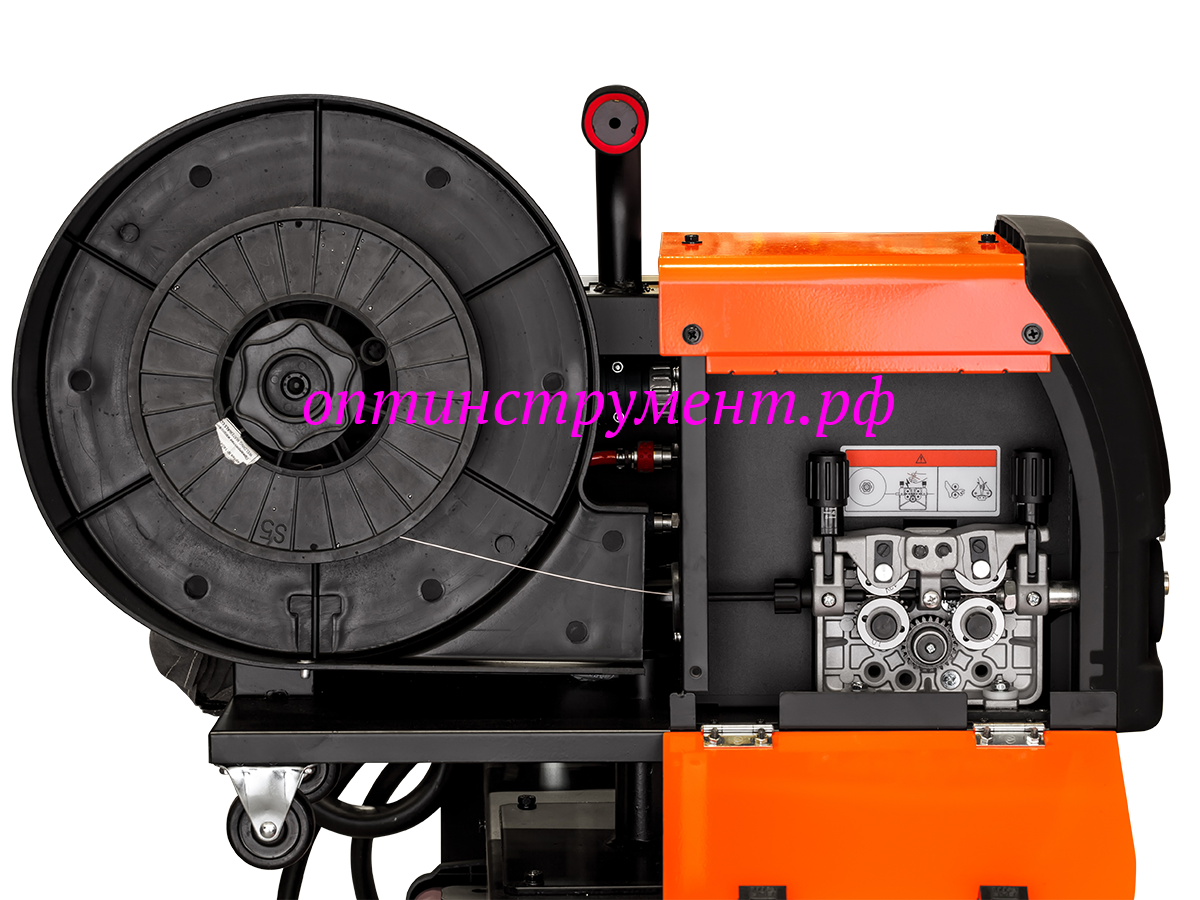 - Блочная система на прочной тележке: источник сварочного тока, подающее устройство и теплообменник .
