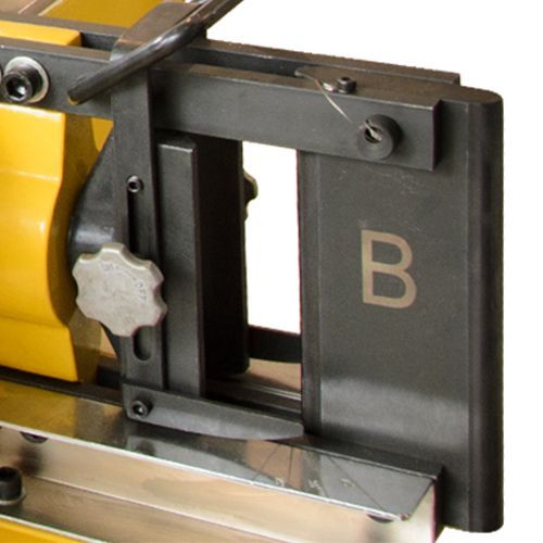 - Встроенное приспособление для центровки шины относительно вертикальной оси станка для увеличения срока его службы. Используется для резки шины (регулируемые ваймы) и для гибки (подъемная площадка);