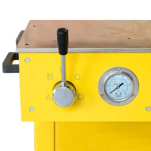 - Насосная станция соединена с прессами шлангами высокого давления через гидравлический переключатель. Перед началом работы переключатель устанавливается в положение, соответствующее выбранному прессу. При нажатии на педаль, электродвигатель приводит в действие насос, нагнетающий в систему рабочую жидкость и приводящий в действие соответствующий пресс;
