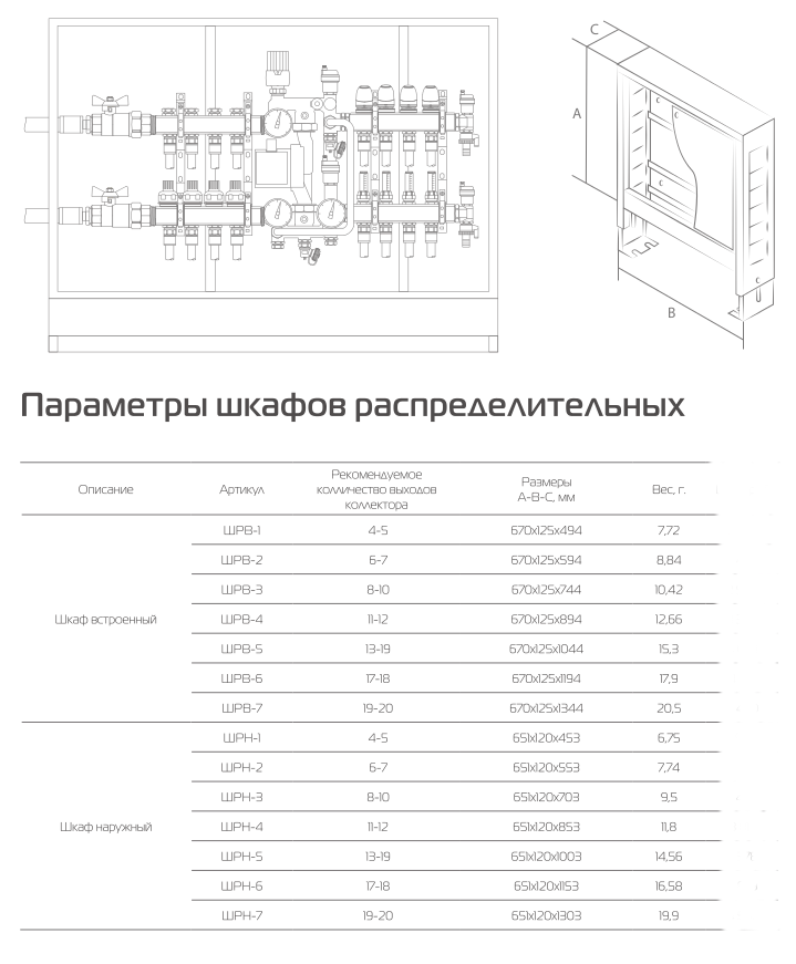 В боковых стенках корпуса шкафа выполнена перфорация, сегменты которой удаляются в любом удобном месте для подсоединения трубопроводов