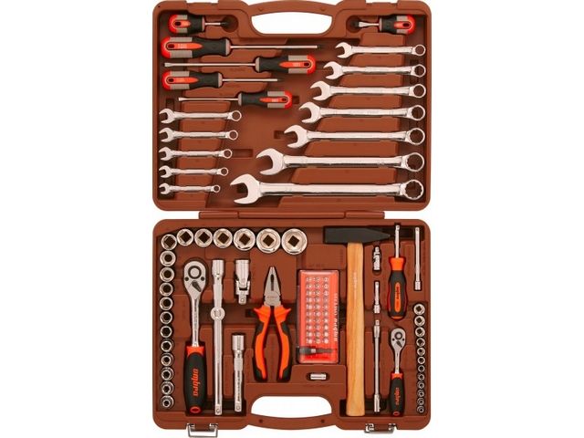 Профессиональный набор инструмента, выполненный из высокопрочной хромованадиевой стали.