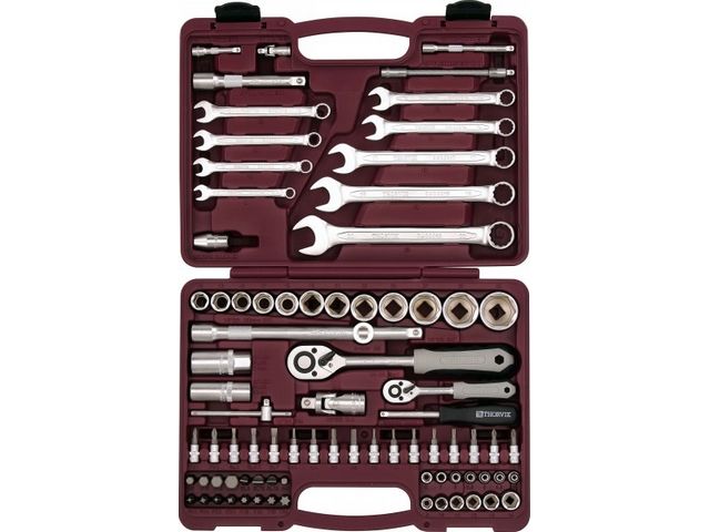Набор инструментов универсальный 1/4" и 1/2"DR, 82 предмета, UTS0082, Thorvik, выполнен из высокопрочной хромованадиевой стали.